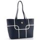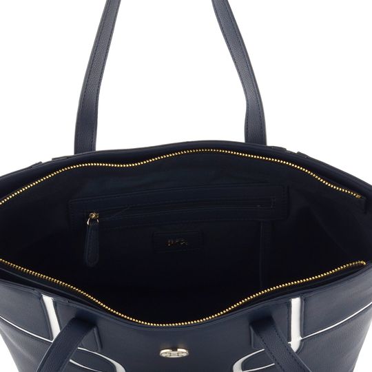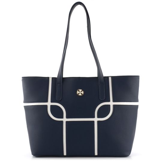 Elegantní dámská kabelka na rameno v pěkné kombinaci tmavě modré a smetanové barvy.