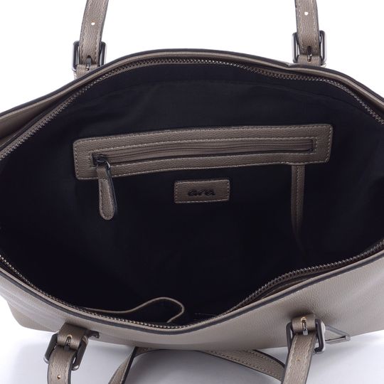 Elegantní a praktická dámská kabelka od značky Ara vyniká svým metalickým provedením. Je ideální volbou pro podzimní a zimní sezónu. Kabelka je dostatečně prostorná, aby pohodlně pojala formát A4, což ji činí skvělou pro každodenní nošení do města nebo do práce. Vyrobena z jemně strukturované syntetiky, v tmavším béžovém odstínu s lehkým bronzovým leskem, působí velmi stylově. Hlavní kapsa na zip zajišťuje bezpečnost vašich věcí. Vnitřní uspořádání zahrnuje zipovou kapsičku na cennosti, dvě kapsičky na mobil a jiné drobnosti a poutko s karabinou na klíče. Madla jsou vzdálena od hrany kabelky cca 26 cm a lze je délkově regulovat. Rozměry kabelky jsou: horní šířka 42 cm, šířka u dna 33 cm, výška 27 cm a hloubka dna 12 cm. Tato kabelka je skvělým doplňkem pro každou moderní ženu, která hledá kombinaci stylu a praktičnosti.