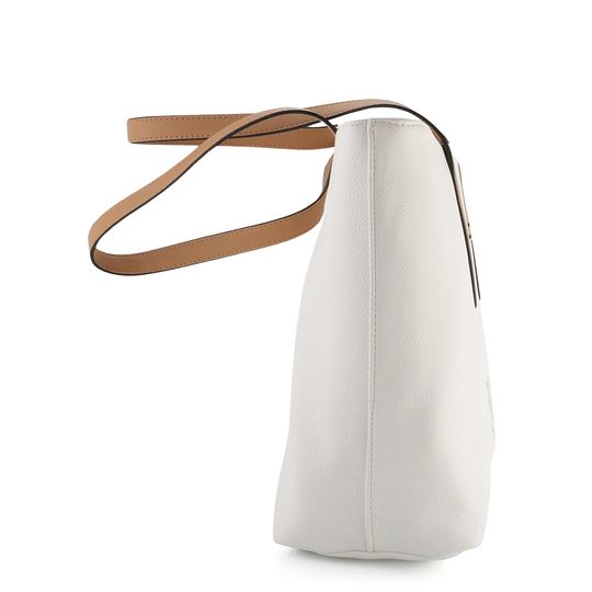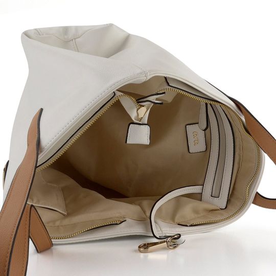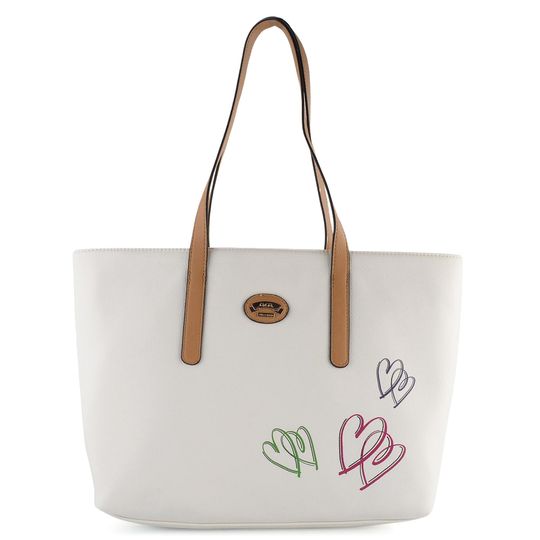 Praktická dámská shopper kabelka ve smetanově bílé barvě s barevnými obrázky srdcí.