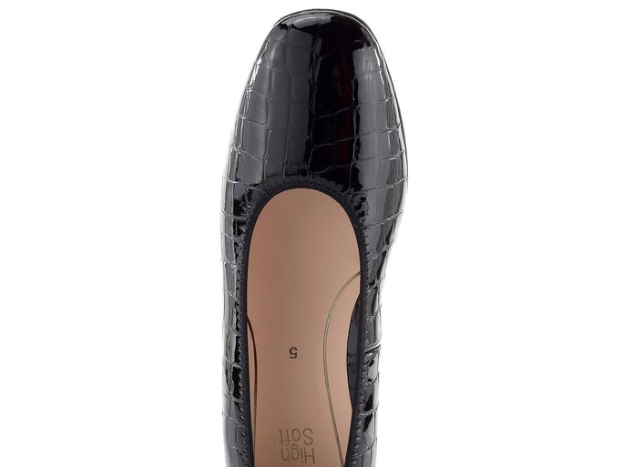 Technologie HighSoft® poskytuje měkkost a pohodlné nošení díky extra měkké vnitřní stélce. Latexová podešev a nižší podpatek v lakované úpravě zajišťují stabilitu a komfort při chůzi. Lodičky jsou vyrobeny lepeným výrobním způsobem, což zaručuje jejich dlouhou životnost. Při nošení může dojít k přirozenému zvrásnění materiálu v namáhaných místech, což je typická vlastnost tohoto materiálu a nikoliv vada.