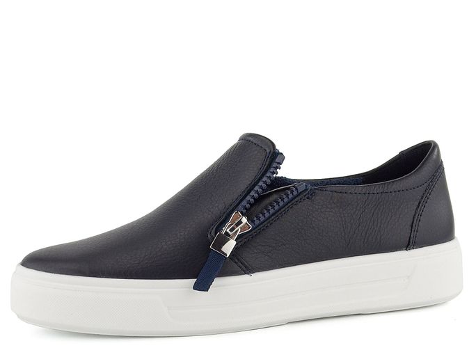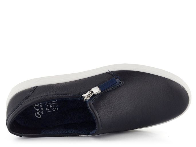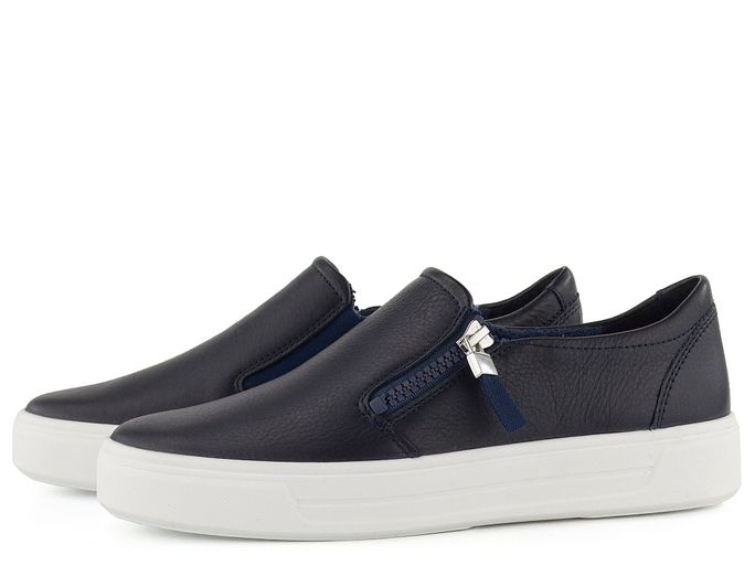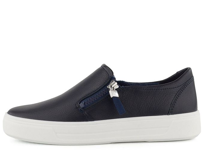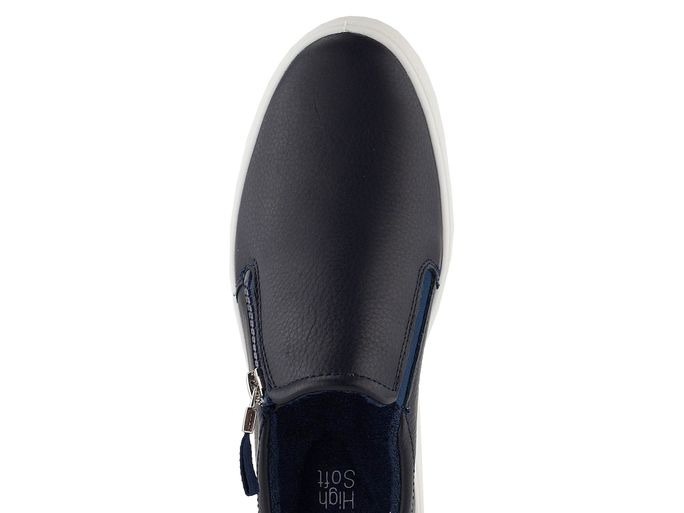 Dámské kožené polobotky v temně modré barvě s postranním zipem a vyšší pohodlnou podešví.