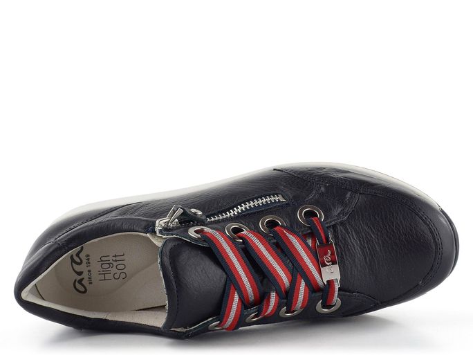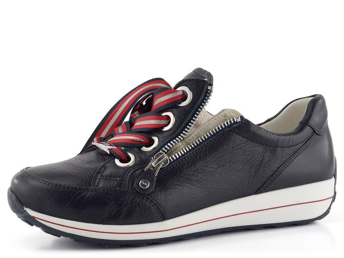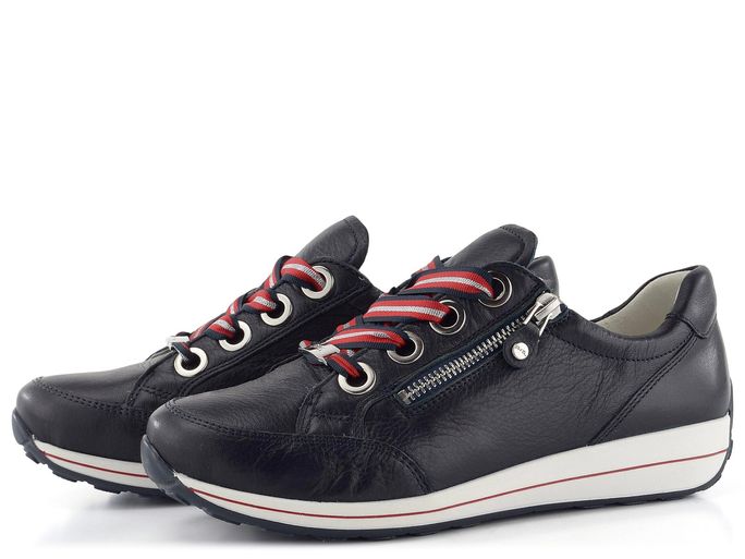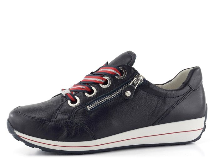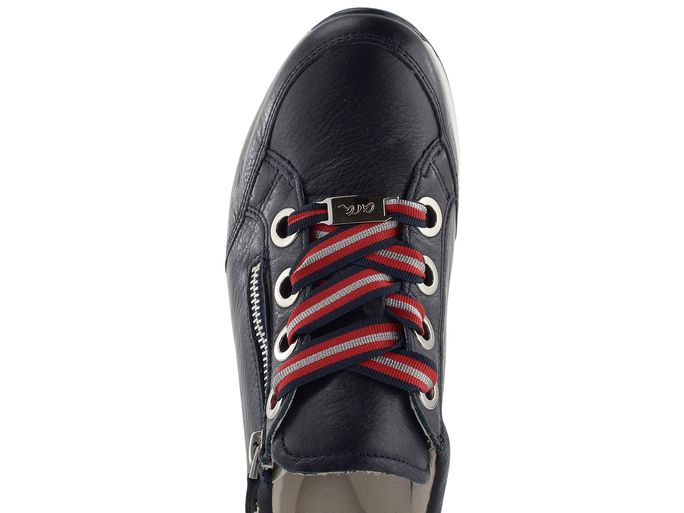 Dámské volnočasové tenisky z hladké kůže v temně modré barvě, vybavené velmi komfortní stélkou a postranním zipem.