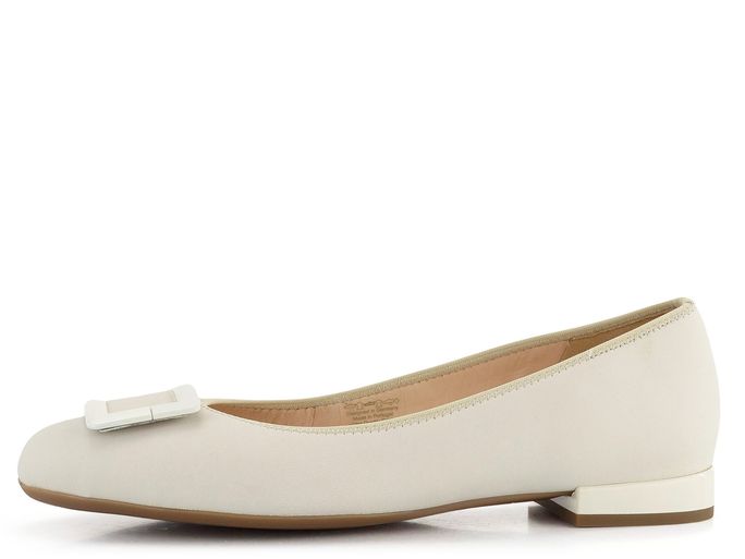 Elegantní dámské baleríny od značky Ara přináší komfort a styl v širším střihu „H“. Svršek z hladké kůže s lehce matným povrchem dodává botám sametově hebký vzhled. Krémová barva s lesklou a matnou sponou na špičce dodává sofistikovaný vzhled. Kožená podšívka a extra měkká, vyjímatelná stélka s podporou podélné nožní klenby zajišťují maximální pohodlí. Inovativní technologie HighSoft® kombinuje měkký svršek a polstrovanou stélku pro dokonalý komfort. Baleríny mají pružný lem pro optimální přizpůsobení a vysoce flexibilní latexovou podešev s nízkým lakovaným podpatkem o výšce 1,8 cm. Tento model je ideální volbou pro každou příležitost, kde je pohodlí stejně důležité jako styl.