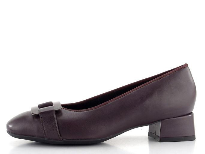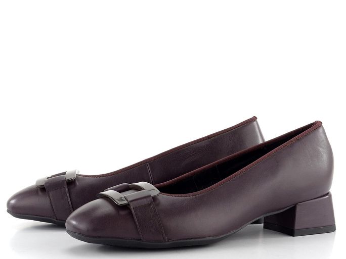 Ara širší kožené lodičky značky Ara v elegantním vínově hnědém odstínu přinášejí nejen styl, ale i maximální pohodlí. Díky šíři "H" a hranatějšímu tvaru špičky jsou ideální pro ženy, které hledají prostornější střih. Vyrobeny z poddajné hladké kůže a zdobené transparentní plastovou sponou, tyto lodičky zaujmou na první pohled.