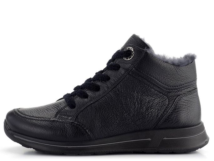 Hledáte stylovou a pohodlnou obuv pro podzimní a zimní sezónu? Kotníkové boty značky Ara v černé barvě jsou ideální volbou. Tyto boty jsou navrženy ve sportovnějším stylu a širším střihovém provedení, což zajišťuje komfort i pro širší chodidla. Výrobcem deklarovaná šíře H a kulatý střih poskytují dostatek prostoru pro vaše nohy.