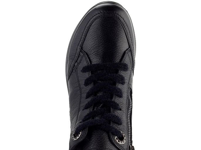 Komfortní kožený dámský kotník v širším střihovém provedení, s teplou vlněnou podšívkou uvnitř.