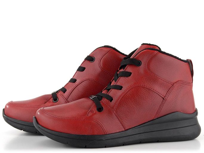 Komfortní dámský kotník v červené barvě a v širším střihovém provedení.
