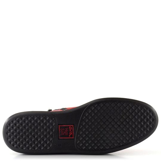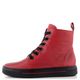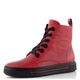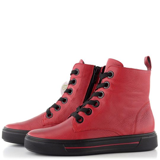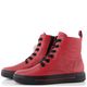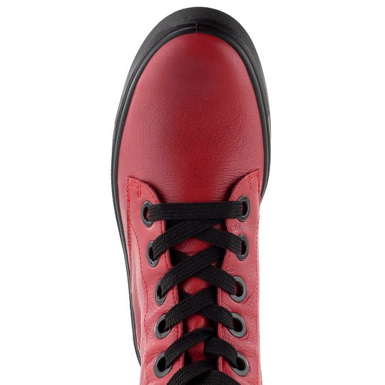 Komfortní dámský kožený kotník v červené barvě s postranním zipem a rovnou podešví.