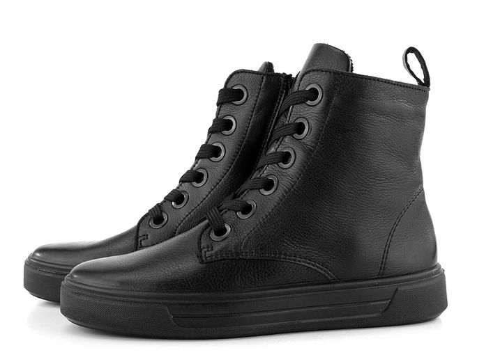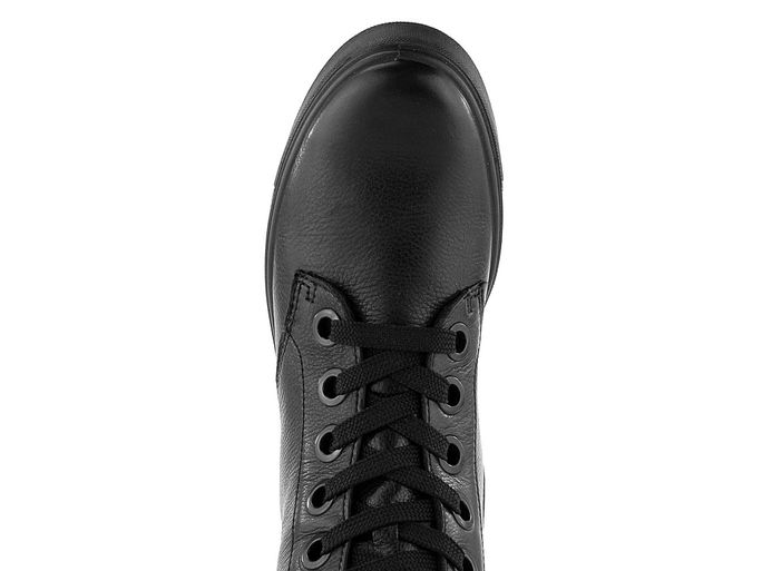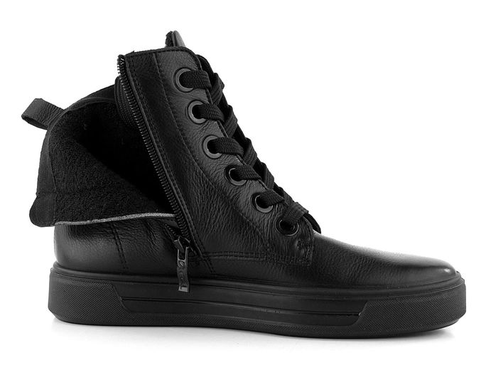 Komfortní dámský kožený kotník v černé barvě s postranním zipem a rovnou podešví.