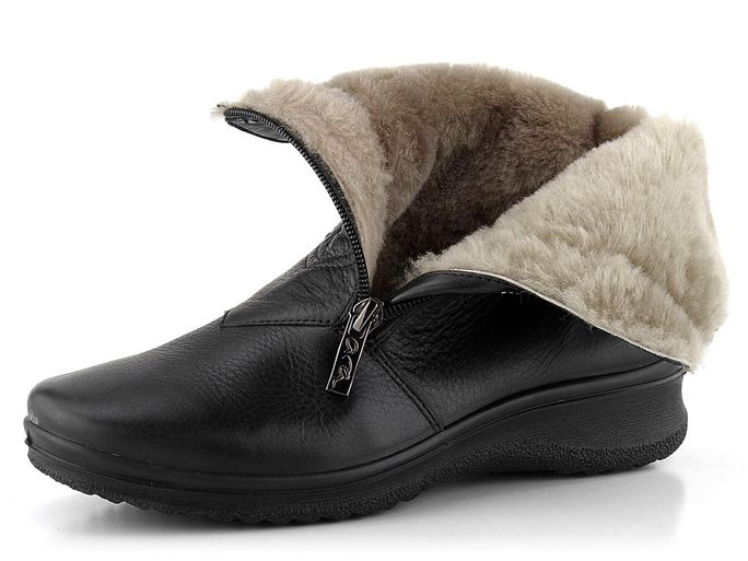 Komfortní, širší a beránkem zateplený dámský kotník s postranním zipem pro snadné obutí.