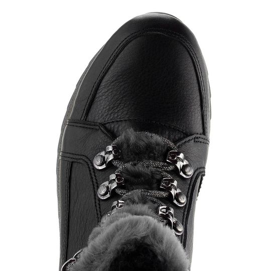 Dámský kožený šněrovací kotník v širším střihu s teplou vlněnou podšívkou uvnitř.