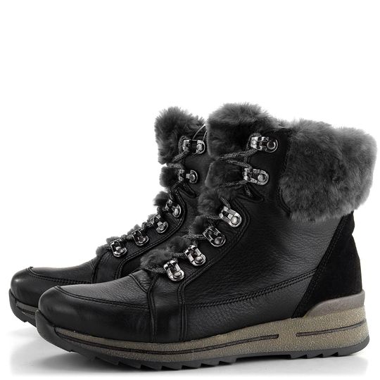 Elegantní a funkční, kotníkové boty značky Ara jsou ideálním společníkem pro podzimní a zimní sezónu. Tento model v černé barvě s grafitově šedým kožešinkovým lemem je navržen pro širší chodidla díky střihu H. Kombinace hladké a velurové kůže dodává botám sofistikovaný vzhled, zatímco výrazné kovové průvlaky a kulaté tkaničky se stříbrnou lurexovou nitkou přidávají na stylu.