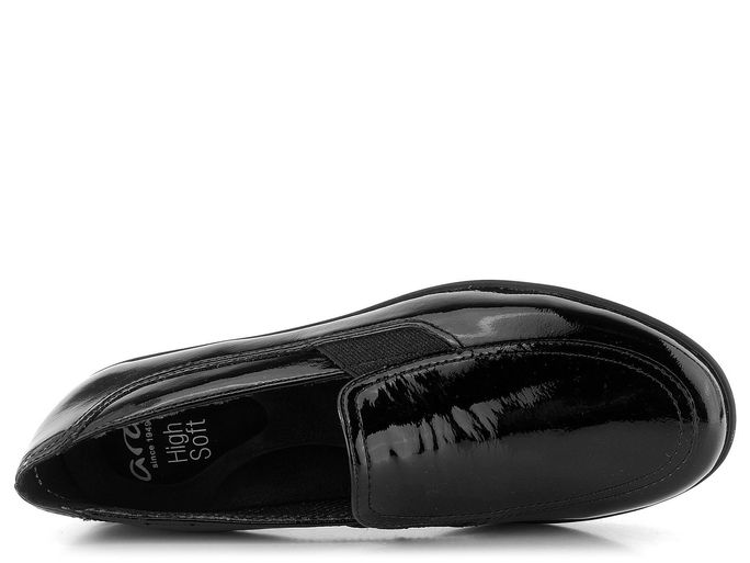 Dámské prozouvací polobotky na klínu značky Ara představují ideální volbu pro ženy s širším typem chodidla. Díky střihovému provedení H a extra měkké vyjímatelné stélce nabízí maximální pohodlí při každodenním nošení. Svršek z hladké kůže v lakované úpravě v elegantní černé barvě dodává botám sofistikovaný vzhled, zatímco pruženky po obou stranách nártu zajišťují snadné obutí. Modelová řada HighSoft® se vyznačuje měkkým svrškem, vypolstrovanou stélkou a flexibilní podešví, což zaručuje komfortní chůzi. Vyšší odlehčená podešev s pohodlným klínkem a protismykovým vzorkem poskytuje stabilitu a bezpečnost na každém kroku. Tyto polobotky jsou ideální volbou pro podzimní a zimní sezónu, ať už do města, kanceláře nebo na lehkou procházku.
