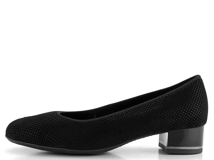 Obujte se do elegance a komfortu s lodičkami značky Ara. Tyto širší semišové lodičky v černé barvě s jemným vzorem jsou ideální volbou pro sezónu podzim/zima 2023/24. Díky prostornějšímu střihu a šíři "H" poskytují neuvěřitelné pohodlí. Hranatější tvar špičky a pružný lem zajišťují optimální padnutí.