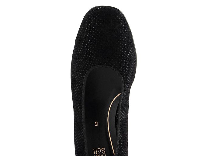 Lodičky jsou vyrobeny z poddajné semišové kůže, která je zdobena jemným vzorkem lesklých puntíků. Uvnitř najdete celokoženou podšívku a extra měkkou stélku s podporou podélné nožní klenby. Modelová řada HighSoft® se vyznačuje měkkým svrškem, vypolstrovanou stélkou a flexibilní podešví.