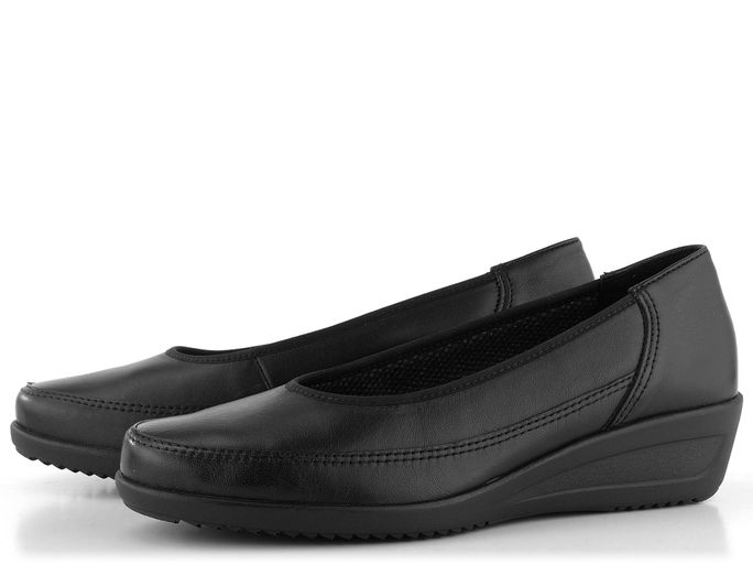 Dámské pohodlné kožené lodičky v širším střihovém provedení a na malém klínku.