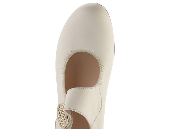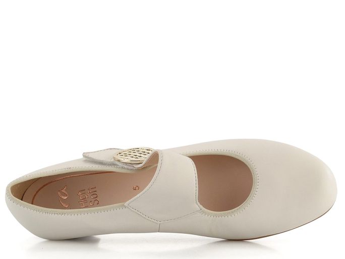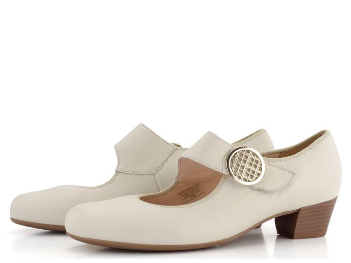 Komfortní dámské lodičky z hladké kůže v krémové barvě, v širším střihovém provedení a s páskem na suchý zip.