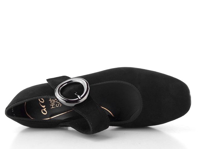 Dámské kožené lodičky značky Ara v širším střihovém provedení jsou ideální volbou pro podzimní a zimní dny. Pohodlný široký střih "H" a hranatější tvar špičky zajišťují komfort při každém kroku. Vyrobené z jemné semišové kůže v elegantní černé barvě, tyto lodičky se snadno kombinují s různými outfity.