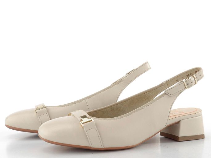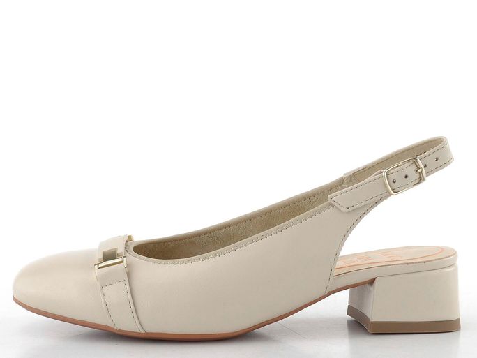 Elegantní široké dámské lodičky s volnou patou v jemném krémovém provedení.