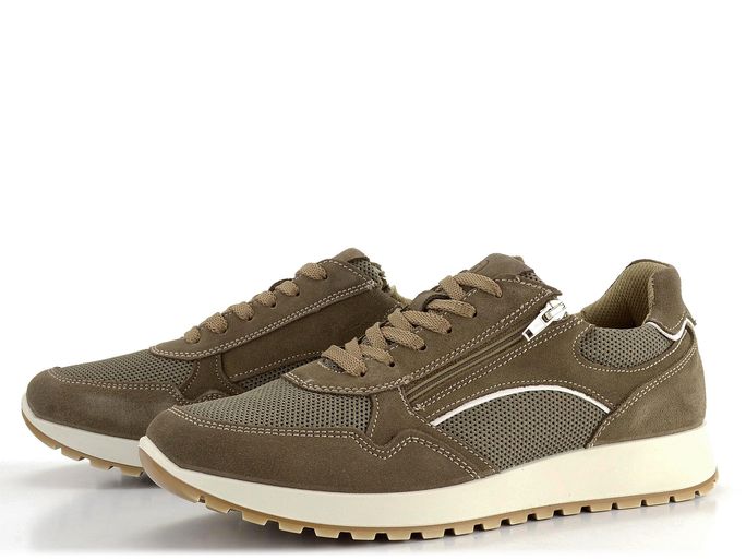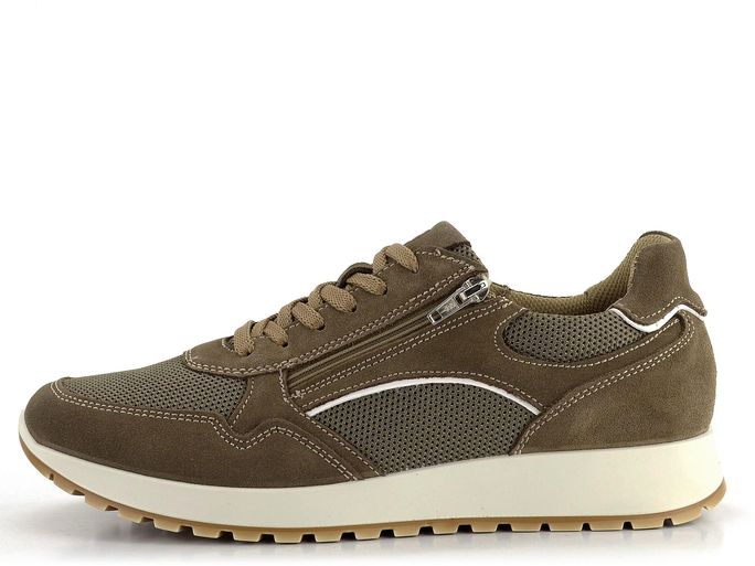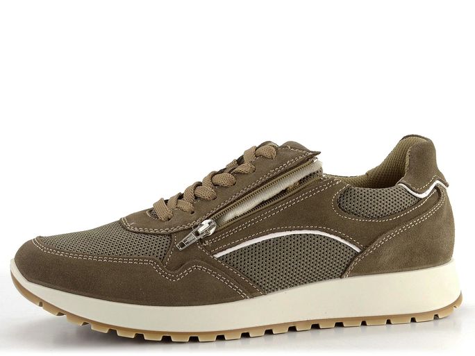 Objevte pohodlí a styl s pánskými teniskami značky Ara, které jsou ideální volbou pro jarní a letní sezónu. Tyto tenisky v tmavě béžovém odstínu, s lehkým nádechem do olivové, kombinují semišovou kůži a prodyšnou textilii, což zajišťuje maximální komfort a odolnost. Výrobce deklaruje šíři H, což znamená, že jsou vhodné pro širší typ chodidla. Pro snadné obutí je vedle šněrování umístěn funkční postranní zip. Vypolstrovaný lem a jazyk, spolu s měkkou anatomicky tvarovanou a vyjímatelnou stélkou, zaručují pohodlí při každém kroku. Sportovnější podešev s hrubším vzorkem a lepený výrobní způsob dodávají těmto teniskám nejen styl, ale i trvanlivost. Vyberte si tenisky značky Ara a zažijte spojení módy a pohodlí.