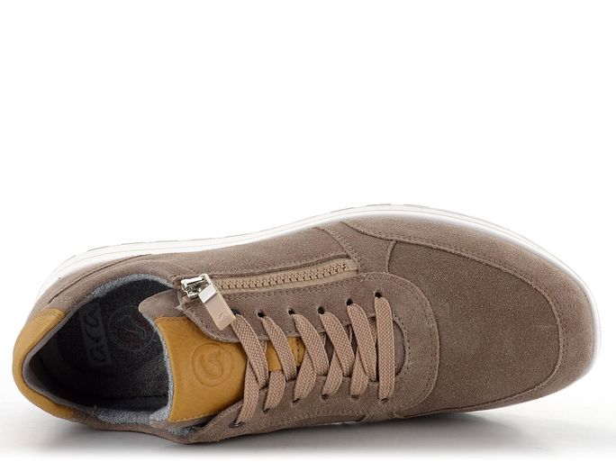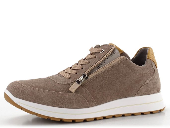 Ara širší pánské tenisky značky Ara jsou ideální volbou pro muže, kteří hledají kombinaci komfortu a stylu. Tyto šněrovací tenisky jsou vyrobeny z kvalitní semišové kůže v odstínu tmavší béžové, která je doplněna přírodními tóny. Díky šířce H jsou vhodné pro širší typ chodidla. Funkční postranní zip usnadňuje obutí, zatímco vnitřní podšívka z froté textilie Ara bamboo® zajišťuje prodyšnost a přirozené klima uvnitř obuvi. Extra měkká, vyjímatelná stélka s textilním froté potahem poskytuje optimální podporu chodidlu. Pevná podešev s hrubým vzorkem a vypolstrovaný lem i jazyk zaručují maximální pohodlí při každodenním nošení. Tyto tenisky jsou skvělou volbou pro jarní a letní sezónu.