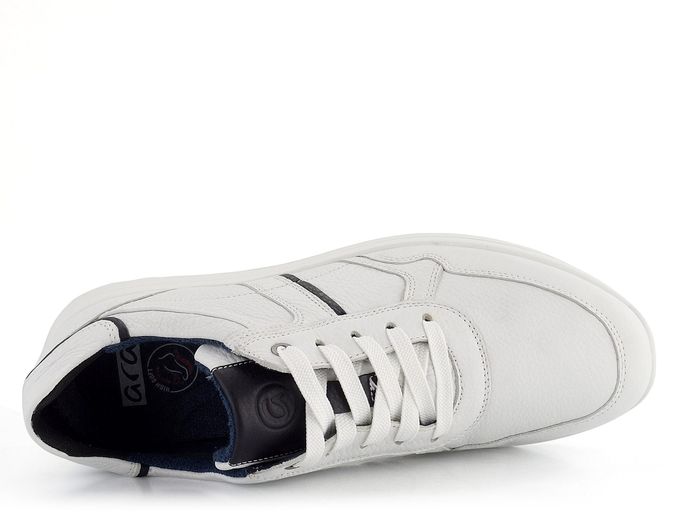 Představujeme pohodlné pánské tenisky značky Ara, ideální pro jarní a letní sezónu. Tyto tenisky z hladké kůže v bílé barvě s temně modrými doplňky zaujmou svým sportovním střihem. Jsou navrženy pro širší typ chodidla (šíře H), což zajišťuje maximální komfort i pro náročnější uživatele. Svršek tvoří přirozeně strukturovaná kůže, která je nejen estetická, ale také odolná.