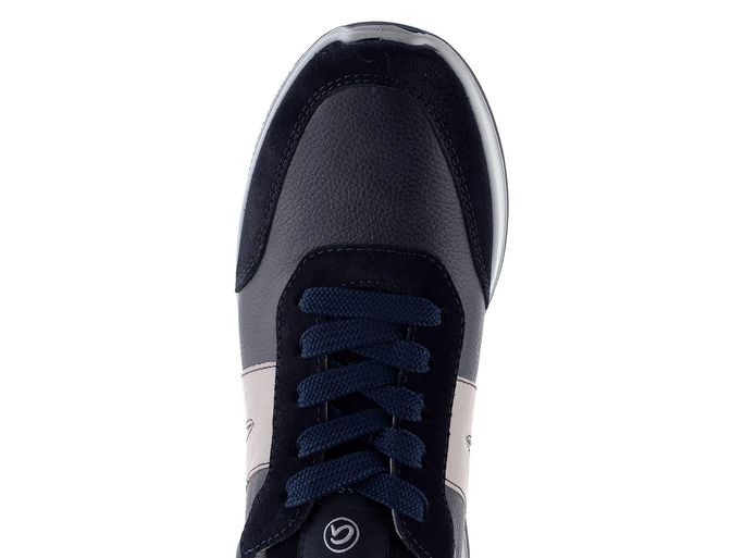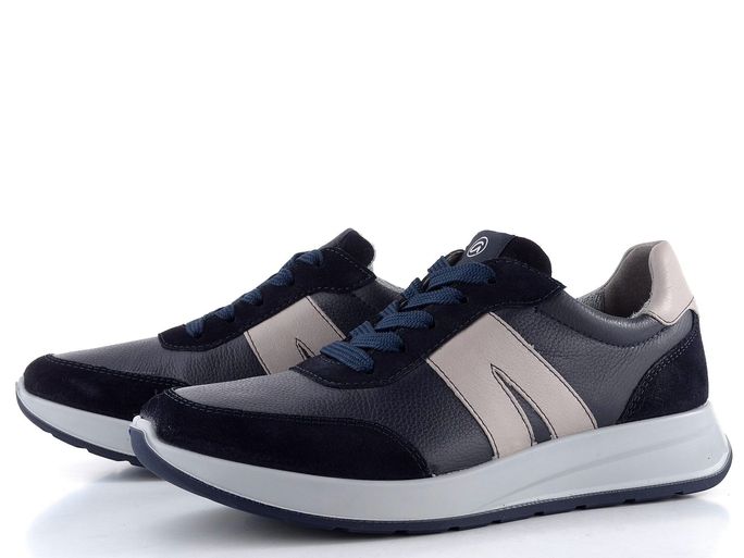 Pánské kožené tenisky v širším střihu a pěkně sladěné barevné kombinaci, vybavené vyjímatelnou vložkou.