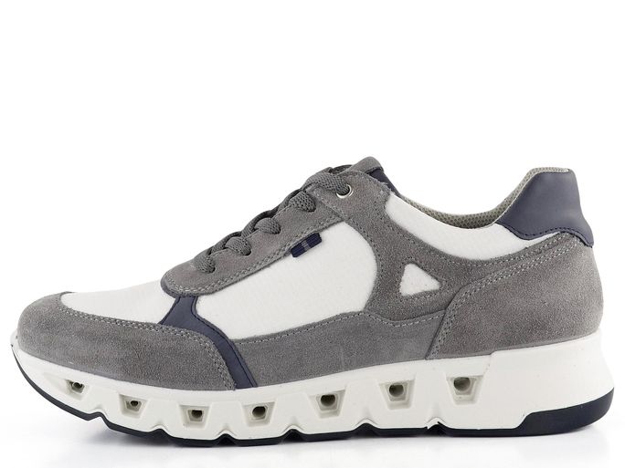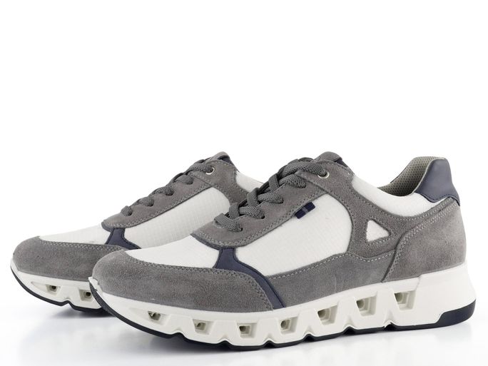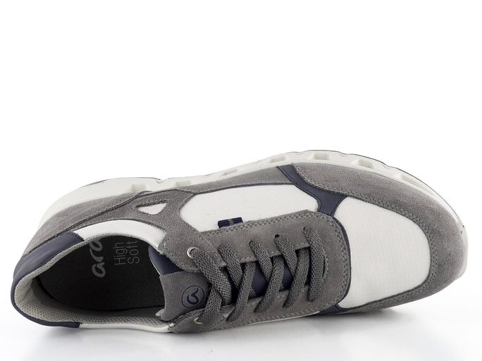 Zažijte dokonalé pohodlí s pánskými teniskami značky Ara, které spojují sportovní styl a elegantní design. Tyto tenisky vynikají šedo-bílou barevnou kombinací s tmavě modrými doplňky, které dodávají botám moderní vzhled. Svršek z semišové kůže a textilie zajišťuje nejen styl, ale i odolnost. Šíře H je ideální pro širší chodidla, což zaručuje maximální komfort. Díky inovativní technologii HighSoft® se můžete těšit na měkký svršek a polstrovanou stélku. Flexibilní podešev s komorami a lepený výrobní způsob zaručují dlouhou životnost. Vnitřní textilní podšívka, měkce podložená molitanem, poskytuje příjemný pocit při každém kroku.