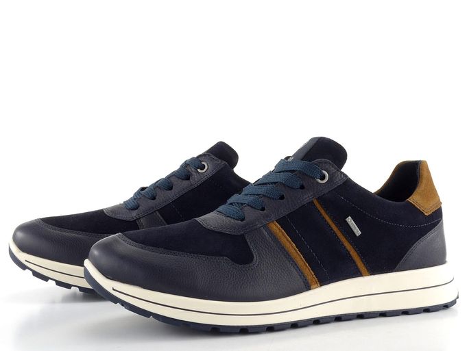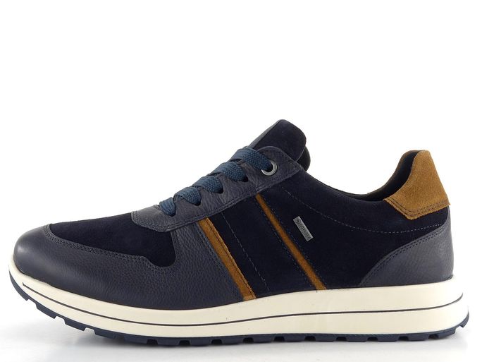 Užijte si pohodlí a styl s pánskými teniskami značky Ara, model Matteo Blau/Nuss. Tyto tenisky jsou ideální volbou pro podzimní a zimní sezónu díky své vodonepropustné membráně Gore-Tex®. Jsou navrženy pro širší chodidla, což zaručuje maximální pohodlí při každodenním nošení. Svršek je vyroben z kombinace strukturované kůže a semiše, což dodává botám elegantní vzhled v temném odstínu modré, zvýrazněný oříškově hnědými doplňky.