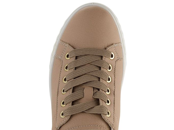 Dámské kožené polobotky v béžové barvě, na módní vysoké platformě a s vyjímatelnou stélkou uvnitř.