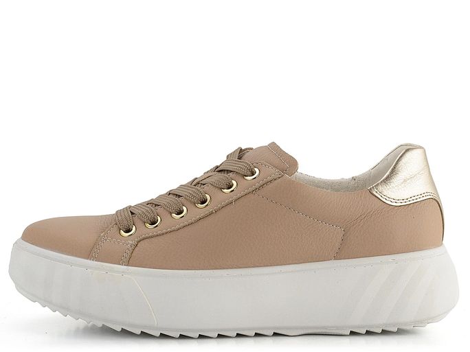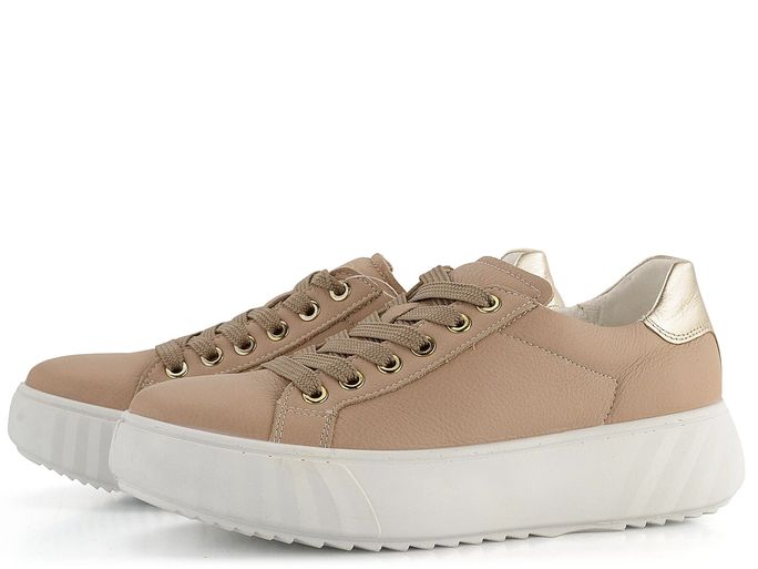 Vyzkoušejte dámské kožené polobotky na platformě od značky Ara, které jsou ideální pro podzimní a zimní sezónu. Tento model je navržen pro širší typ chodidla s označením šíře "H" a poskytuje maximální pohodlí díky měkkému svršku z poddajné strukturované kůže. Béžový odstín s jemnými zlatými doplňky dodává botám elegantní vzhled, který se hodí jak do města, tak do kanceláře.