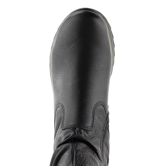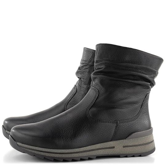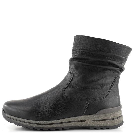 Dámský širší černý kotník s řasením, postranním zipem a vyjímatelnou stélkou.