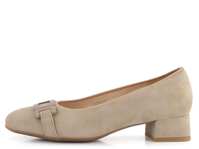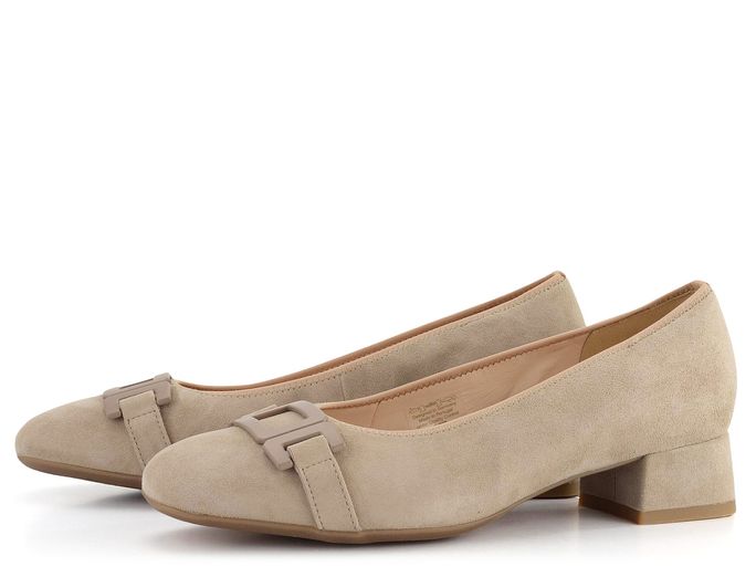 Elegantní a pohodlné dámské lodičky od značky Ara jsou ideální volbou pro každou ženu, která hledá styl a komfort. Tyto lodičky vynikají širším střihem "H", který zajišťuje dostatek prostoru pro vaše nohy. Semišová kůže v béžové barvě dodává botám sofistikovaný vzhled, zatímco pokovený řetízek na špičce přidává jemný, elegantní detail.