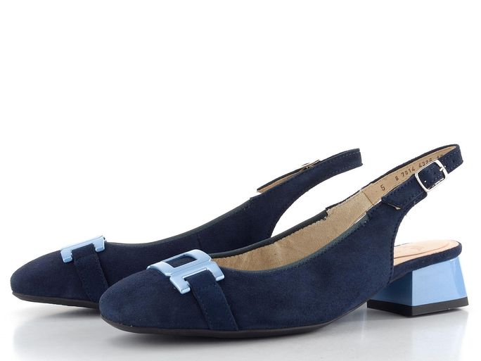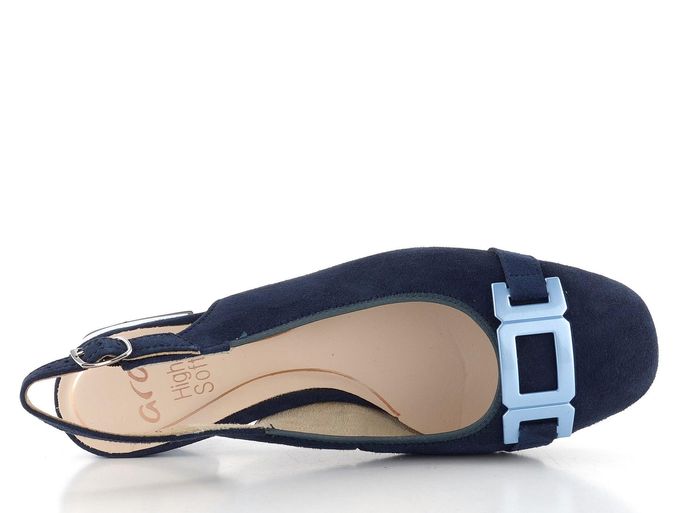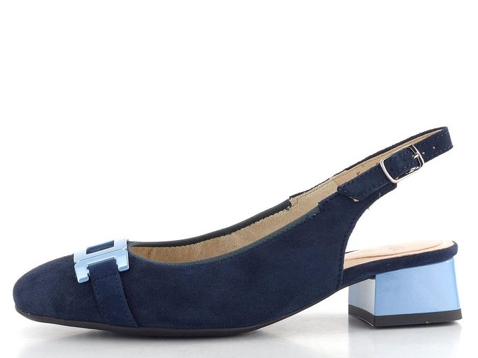 Zažijte dokonalou kombinaci pohodlí a elegance s dámskými lodičkami s volnou patou od značky Ara. Tyto lodičky se pyšní širším střihovým provedením "H", které zajišťuje pohodlí i při celodenním nošení. Jemná semišová kůže v tmavě modré barvě je doplněna kovovým řetízkem na špičce, což dodává botám sofistikovaný vzhled. Inovativní technologie HighSoft® kombinuje měkký svršek a polstrovanou stélku pro maximální komfort. Stabilní lakovaný podpatek o výšce 3,5 cm je barevně sladěn se sponou na špičce. S těmito lodičkami budete připraveni na jakoukoli příležitost, ať už jde o kancelářské prostředí nebo formální událost.