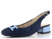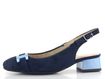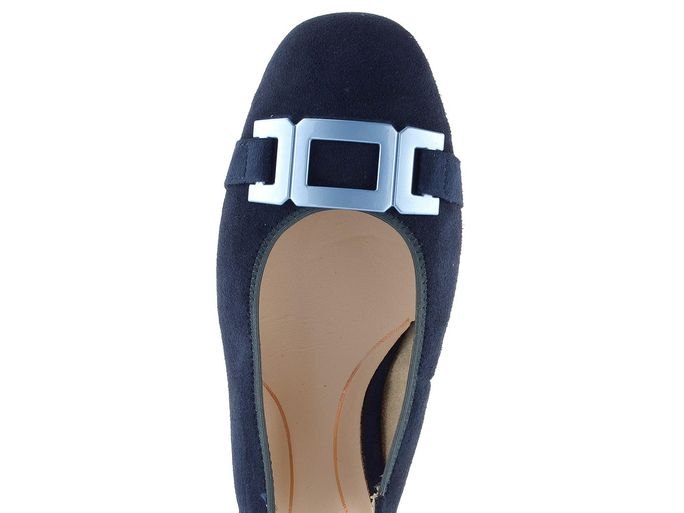 Širší dámské lodičky ze semišové kůže, se sponou na špičce a volnou patou s regulačním páskem.