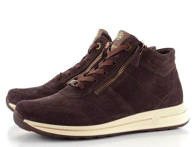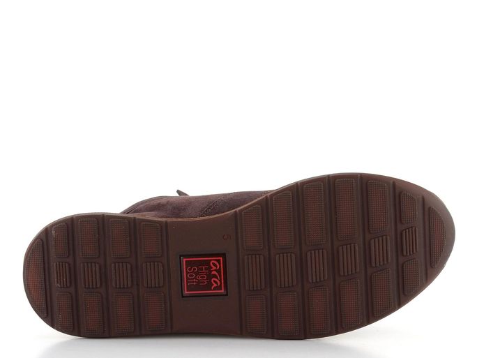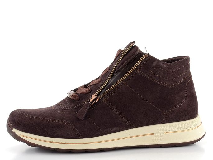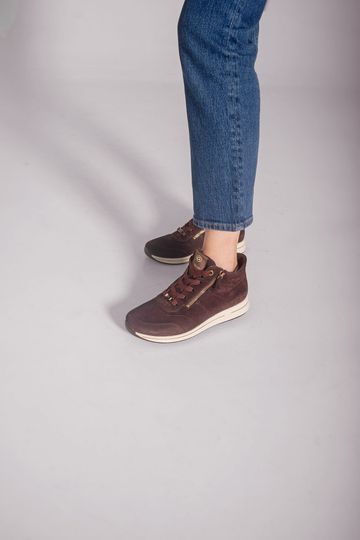Obuv značky Ara nabízí komfort a styl v jednom. Tento model ve sportovnějším střihu je ideální pro širší chodidlo díky šíři H. Svršek je vyroben z poddajné semišové kůže v elegantní tmavě vínové barvě s hnědým nádechem. Klasické šněrování je doplněno dvěma postranními zipy, které usnadňují obutí. Polstrovaný kotníkový lem a jazyk zajišťují pohodlí při nošení.