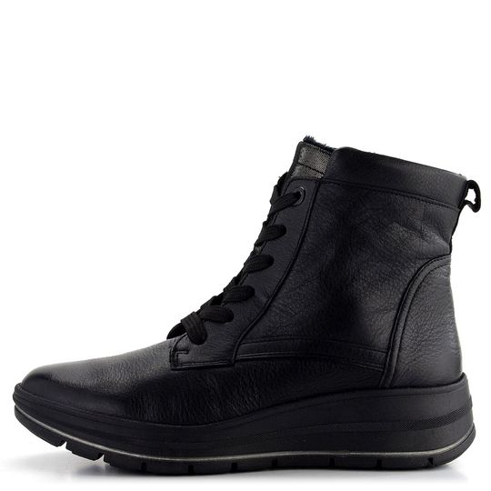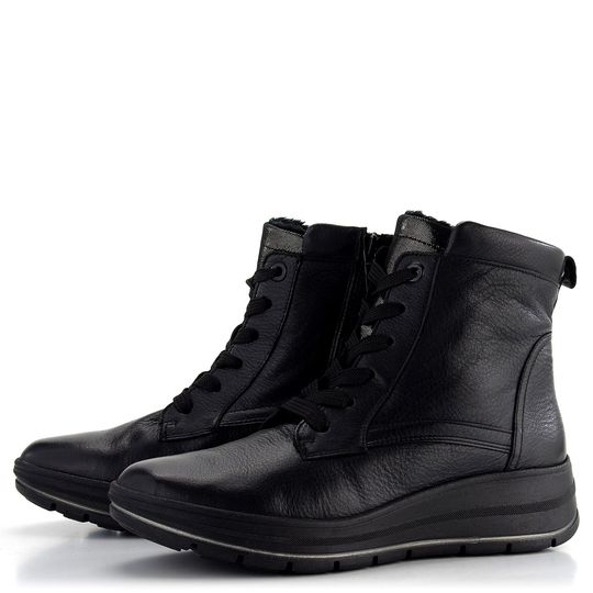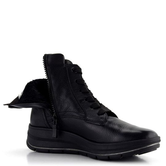 Dámský širší kožený kotník na šněrování, s postranním zipem a teplou podšívkou.