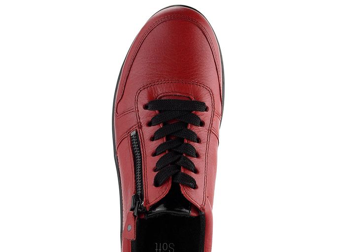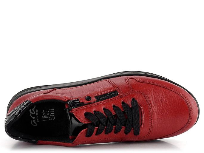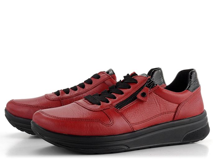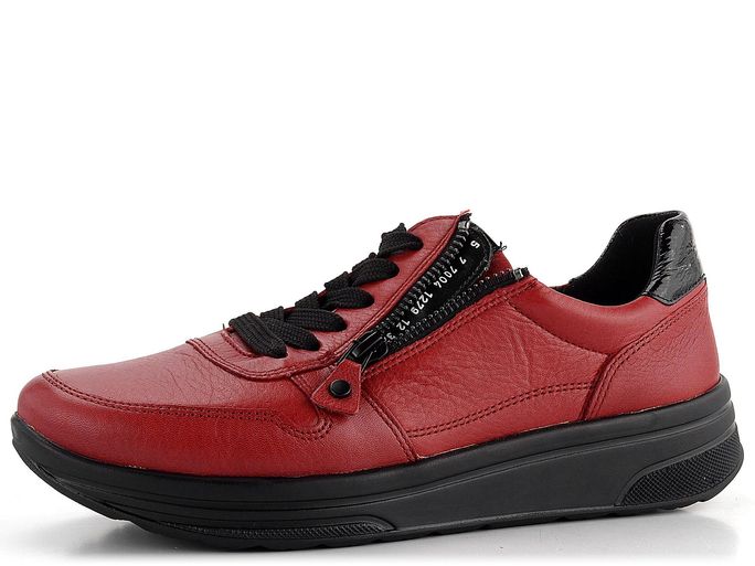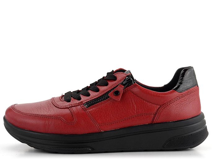 Tenisky značky Ara v modelu Sapporo Chilli/Schwarz 12-32440-26 kombinují styl a komfort. Ideální volba pro podzimní a zimní sezónu. Tyto dámské tenisky jsou navrženy pro širší chodidla, což zajišťuje pohodlí i při delším nošení. Svršek z hladké a lakované kůže v odstínu chilli s černými detaily dodává teniskám elegantní vzhled.