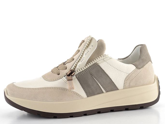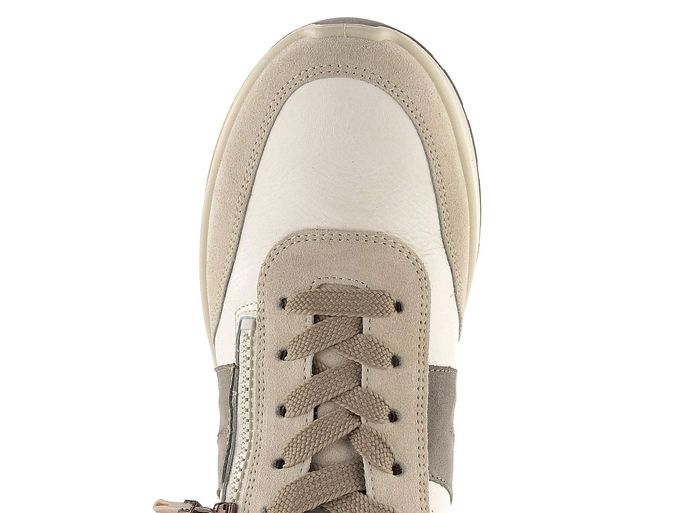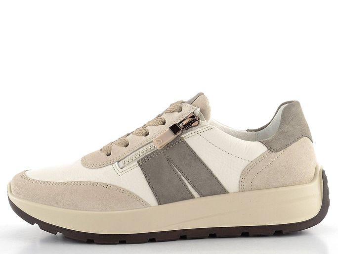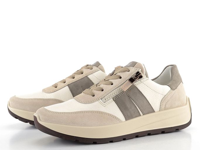 Hledáte pohodlné a stylové tenisky pro chladnější měsíce? Značka Ara představuje dámské tenisky New York Shell/Cream, které kombinují sportovní eleganci s maximálním komfortem. Tyto tenisky mají šíři H, což je ideální pro širší typ chodidla. Svršek je z kvalitní strukturované a semišové kůže v kombinaci béžové, šedé a krémové barvy.
