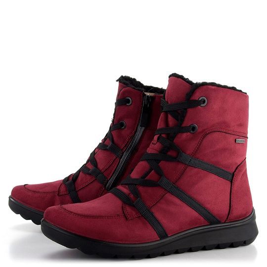 Dopřejte si komfort a styl s dámskými kotníkovými botami značky Ara v širším střihu. Tento model v nádherném tmavě červeném odstínu, s nádechem do malinově vínové, je ideální pro podzimní a zimní sezónu. Šíře "H" a kulatý prostorný střih zajišťují pohodlí i pro širší chodidla. Svršek je vyroben z kvalitní textilie, doplněný o vodoodpudivou membránu Gore-Tex®, která chrání před vlhkostí a zajišťuje tepelnou izolaci.