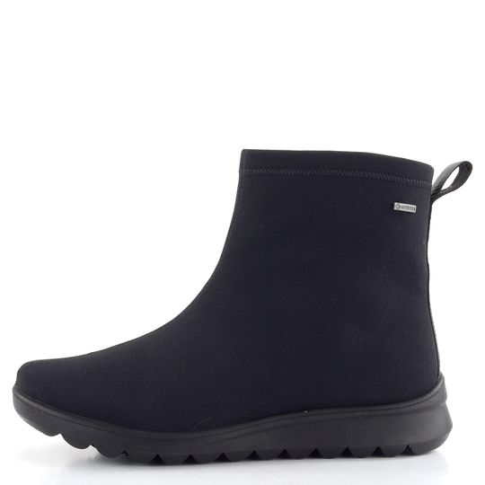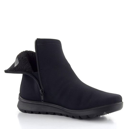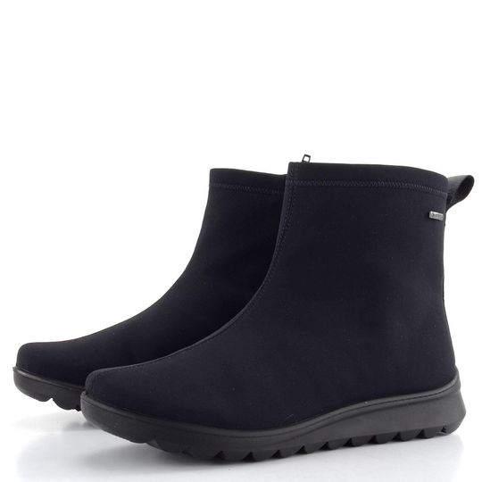 Vylepšete svůj podzimní a zimní šatník s dámskými kotníkovými botami značky Ara. Tento model z kolekce pro ženy nabízí komfortní širší střih s deklarovanou šíří "H". Svršek je vyroben z kvalitní softshellové textilie v černé barvě, která je doplněna o vnitřní postranní zip pro snadné obutí a pružnou vsadku. Vnitřní podšívka z umělého beránku zajišťuje teplo a pohodlí. Boty jsou vybaveny vodoodpudivou membránou Gore-Tex®, která funguje jako tepelný izolant a nepropustí vlhkost. Technologie HighSoft® zaručuje měkkost svršku, vypolstrovanou stélku a flexibilní podešev. Vyjímatelná stélka s vystouplým srdíčkem, podélnou klenbou a patním absorbérem přispívá k celodennímu komfortu. S výškou podpatku 3,5 cm a výškou kotníku cca 14 cm jsou tyto boty ideální volbou pro městské prostředí i lehké procházky venku.