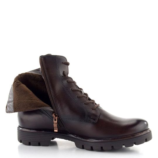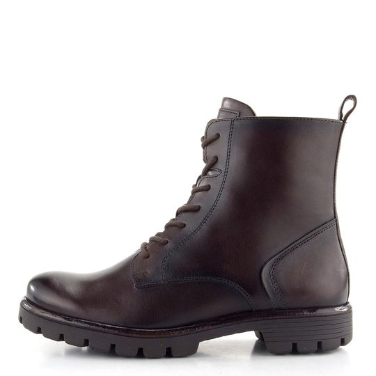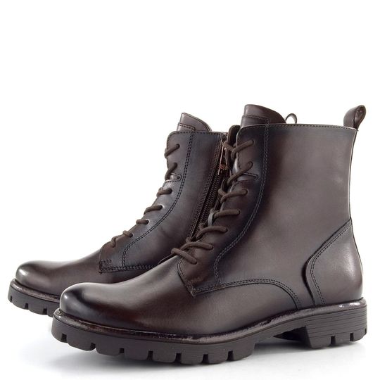 Komfortní dámský kožený kotník se šněrováním, postranním zipem a hřejivou podšívkou.