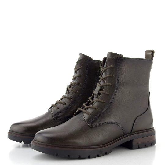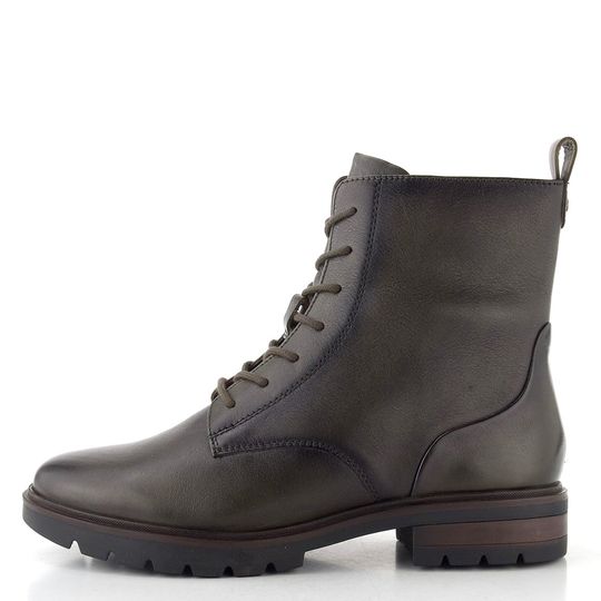 Pohodlný dámský kotník od značky Ara v jedinečném odstínu temně zelené (olivové) barvy je ideální volbou pro podzimní a zimní dny. Jeho prostorný kulatý střih z hladké kvalitní kůže zaručuje komfort během celého dne. Funkční šněrování a zip na vnitřní straně usnadňují obutí, zatímco textilní podšívka z hebkého textilního vlasu a kožené lemy poskytují příjemný pocit.