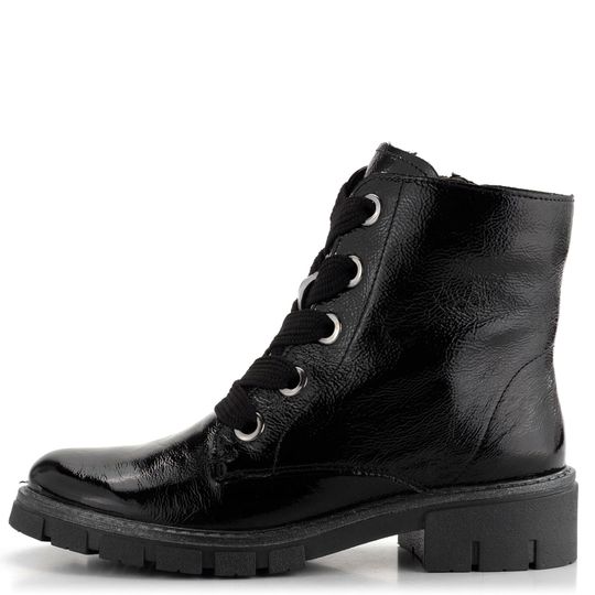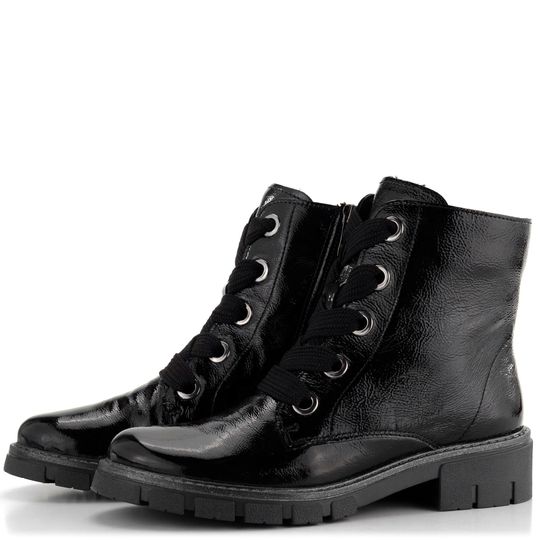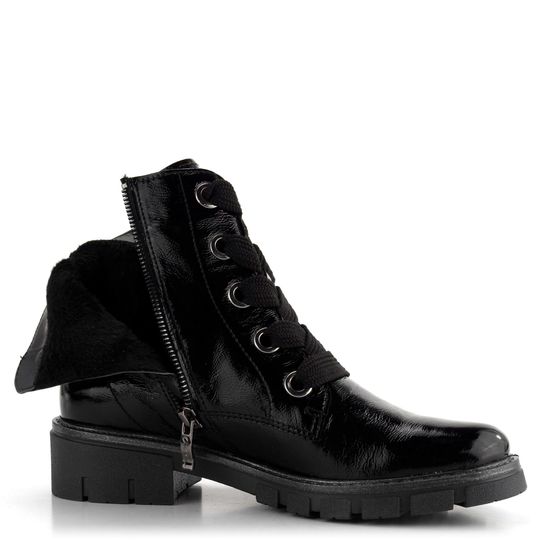 Stylové dámské kotníkové boty od značky Ara jsou ideální volbou pro chladné podzimní a zimní dny. Svršek z lakované kůže s jemnou mačkanou strukturou v elegantní černé barvě dodává botám výrazný vzhled. Klasické šněrování s širokými tkanicemi a funkční zip na vnitřní straně usnadňují obutí. Teplá podšívka z hebkého kožíšku a vyjímatelná extra měkká stélka s textilním potahem zajišťují maximální pohodlí. Latexová podešev s hrubším vzorkem a široký podpatek vysoký 4,4 cm poskytují stabilitu a komfort při každodenním nošení. Technologie HighSoft® kombinuje měkký svršek, vypolstrovanou stélku a flexibilní podešev pro dokonalý komfort. Kotníkové boty od značky Ara jsou skvělou volbou pro každou ženu, která hledá stylovou a pohodlnou obuv do města i na lehké procházky. Výška kotníku je 13 cm (bez podpatku), což zajišťuje optimální podporu a ochranu. Nechte se přesvědčit kvalitou a designem, které vám tyto boty přináší.