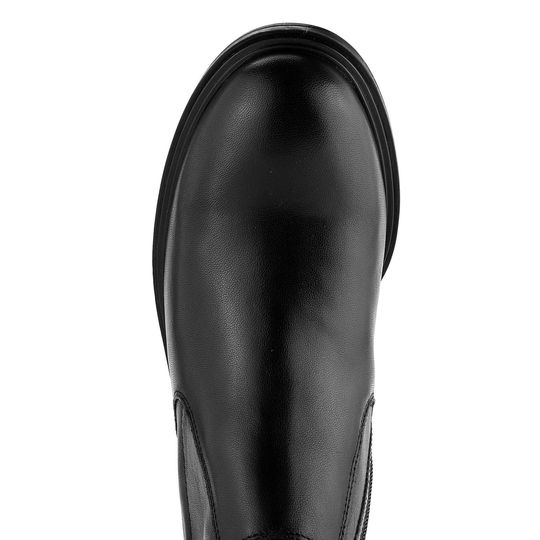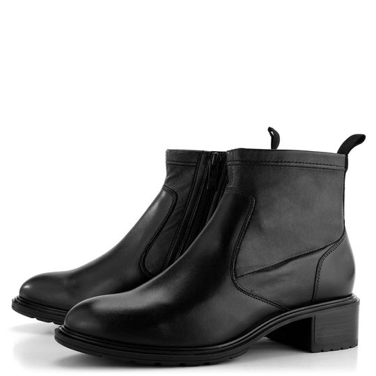 Dámský kožený kotník na širokém podpatku, s pružnou kotníkovou částí, postranním zipem a teplejší podšívkou.