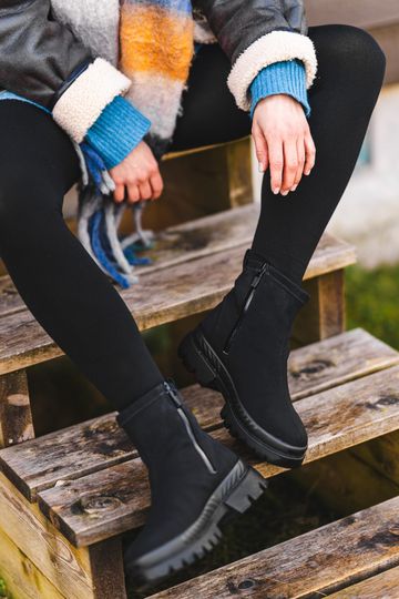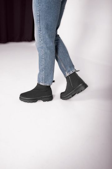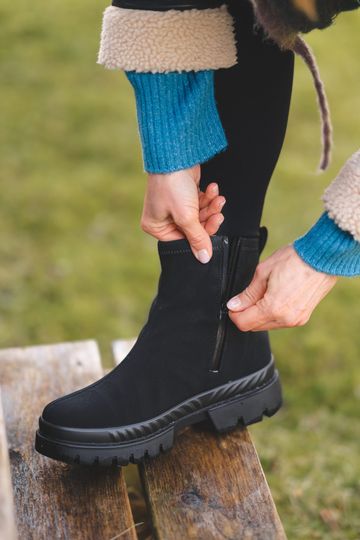 Dámský textilní kotník na platformě, s funkční membránou, postranním zipem a teplou vnitřní podšívkou.