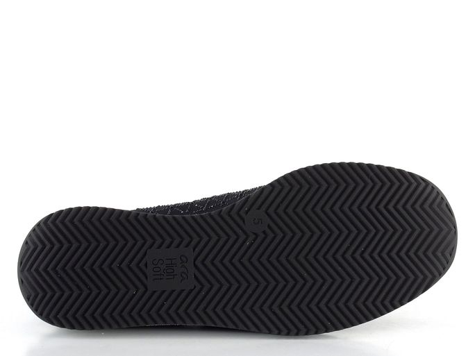 Dámské mokasíny v černé barvě zdobené blyštivými kamínky a vybavené měkkou vyjímatelnou vložkou.