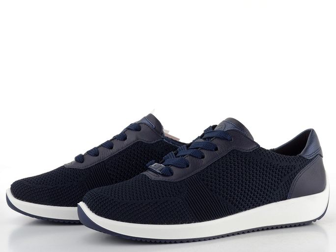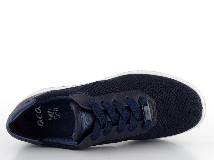 Zažijte pohodlí a styl s dámskými teniskami značky Ara v elegantní tmavě modré barvě. Tyto tenisky nabízejí sportovní střih a pružné zóny v oblasti kloubků, což zajišťuje maximální komfort při každém kroku. Svršek je kombinací úpletové textilie, hladké a metalické kůže, což dodává botám moderní vzhled. Klasické šněrování s pružnými tkaničkami usnadňuje nazouvání. Vnitřní podšívka z bambusové froté textilie Ara bamboo® je prodyšná a příjemná k pokožce. Technologie HighSoft® a Fusion 4 zajišťují měkkost, flexibilitu a stabilitu. Podešev Dynergy podporuje přirozený pohyb chodidla. Tyto tenisky jsou ideální volbou pro jarní a letní sezónu.