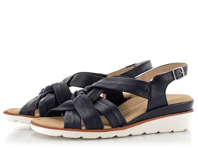 Tmavě modré dámské sandály na mírném klínku s komfortní vyměkčenou nášlapnou stélkou.