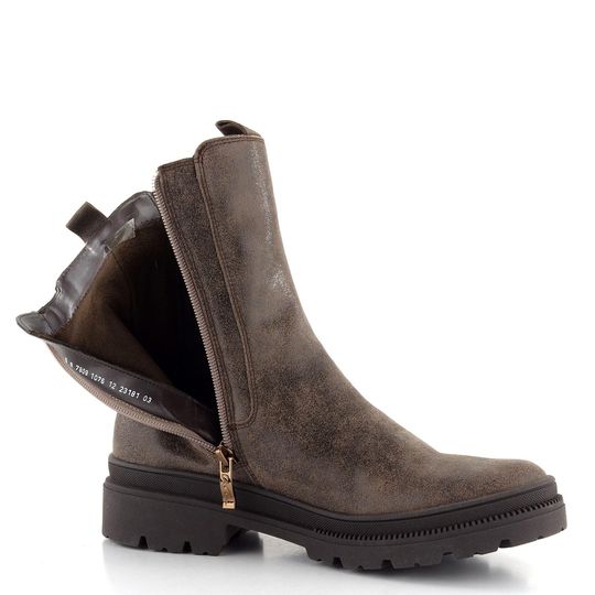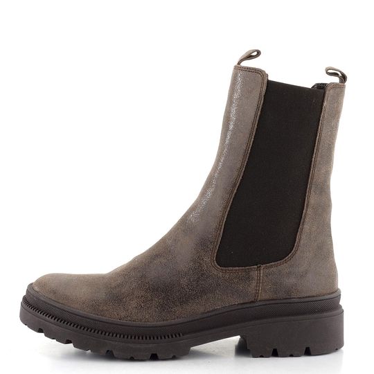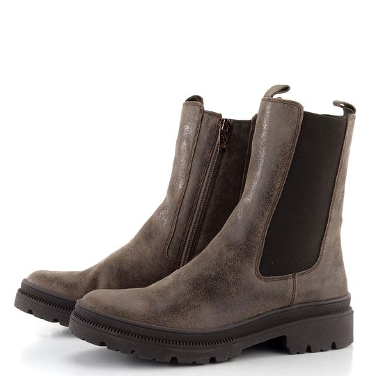 Vyšší chelsea kotníkové boty značky Ara, model Dover Schlamm 12-23181-03, jsou ideální volbou pro podzimní a zimní sezónu. Tyto stylové boty v odstínech čokoládově hnědé barvy mají svršek z popraskané kůže, který jim dodává módní "used look". Prostorný kulatý střih a široká pruženka na vnější straně zajišťují pohodlí při každodenním nošení. Na vnitřní straně je zip pro snadné obutí a vyzutí. Vnitřní podšívka je z textilie a syntetiky, bez zateplení, což zaručuje komfort i při delším nošení. Boty mají vyjímatelnou stélku s textilním potahem a využívají technologii HighSoft® pro maximální pohodlí. Latexová podešev s traktorovým vzorkem a širokým podpatkem (4,5 cm) nabízí stabilitu a odolnost. Výška kotníku je 17 cm, což poskytuje dostatečnou ochranu a styl. Tyto boty jsou lepené, což zaručuje jejich dlouhou životnost. Dopřejte si kvalitu a styl s botami značky Ara.